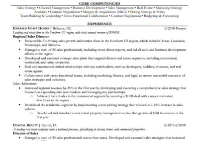 Having discussed the key components of a successful resume, let’s examine a few sales resume examples:
