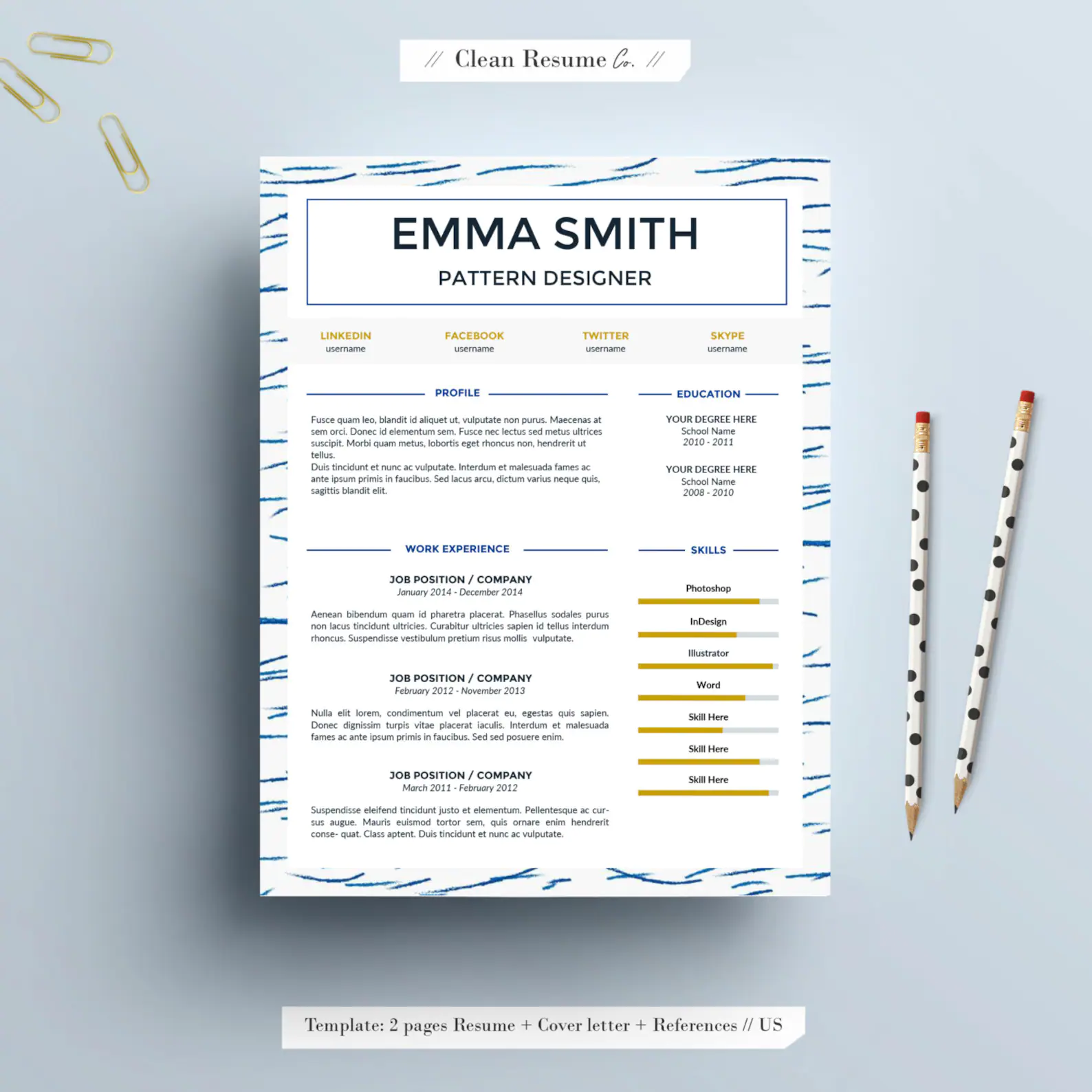 Notice that the colors are not crazy or overwhelming. They instead accentuate the applicant’s skills. This designer also uses a pattern on her resume which matches the job position. But this is the rare exception – for the non-creative professionals, it’s better to stick to black and white (and avoid busy patterns!).
