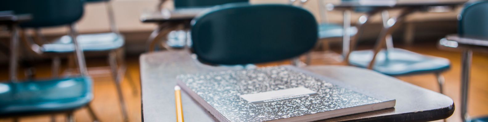 Eye-catching education background photos can include your own classroom, books on a shelf, and even your desk.