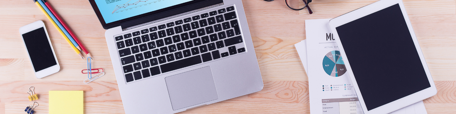 If you’re in the finance industry, consider a background image that includes financial or accounting tools such as a calculator or computer.