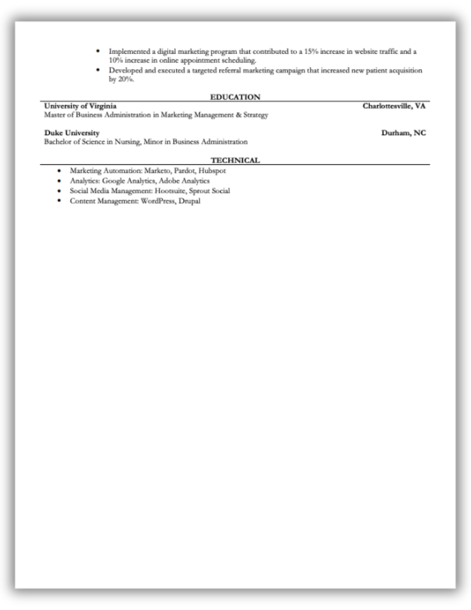 In addition to your formal education and certifications, it’s important to showcase your technical skills relevant to the marketing industry.